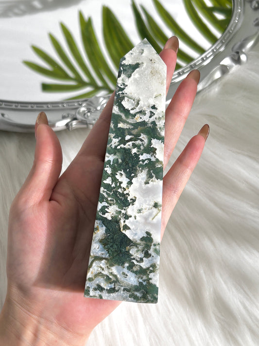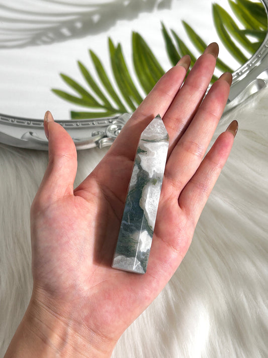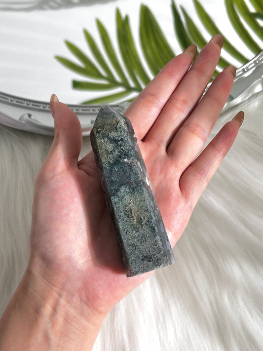 Moss Agate Crystal Tower (#A00027)